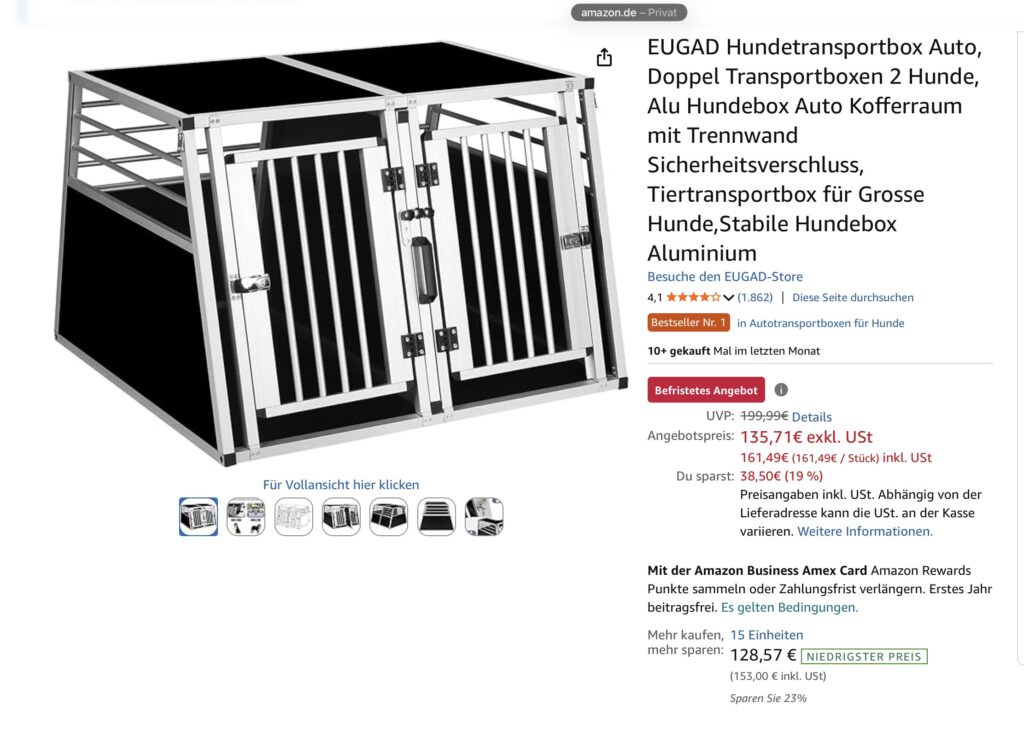 Wir bieten hier eine Hundebox mit passendem Polster mit frisch gewaschener Bezug und einem Wassernapf, den man am Gitter anbringen kann. Die Box ist gebraucht und hat dementsprechend ein paar Gebrauchsspuren. Sie lässt sich zusammenfalten. Weitere Infos findet ihr unter https://www.kleinanzeigen.de/s-anzeige/faltbare-hundebox-mit-polster/3339857425-313-3842? Meldet euch gern bei weiteren Fragen 🙂