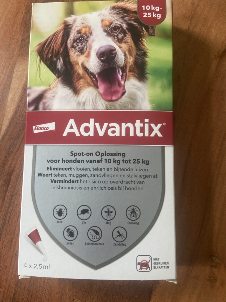 Ich verschenke Advantix Spot-On für Hunde von 10–25 kg (gegen Flöhe, Zecken & Co.). Ursprünglich waren es 4 Ampullen – eine fehlt im Blister, übrig sind also noch 3 unbenutzte. Original verpackt, Haltbarkeit noch gültig. Wir leben inzwischen mit Katzen zusammen und dafür ist Advantix leider nicht geeignet. Daher möchten wir sie hier gerne an jemanden abgeben.