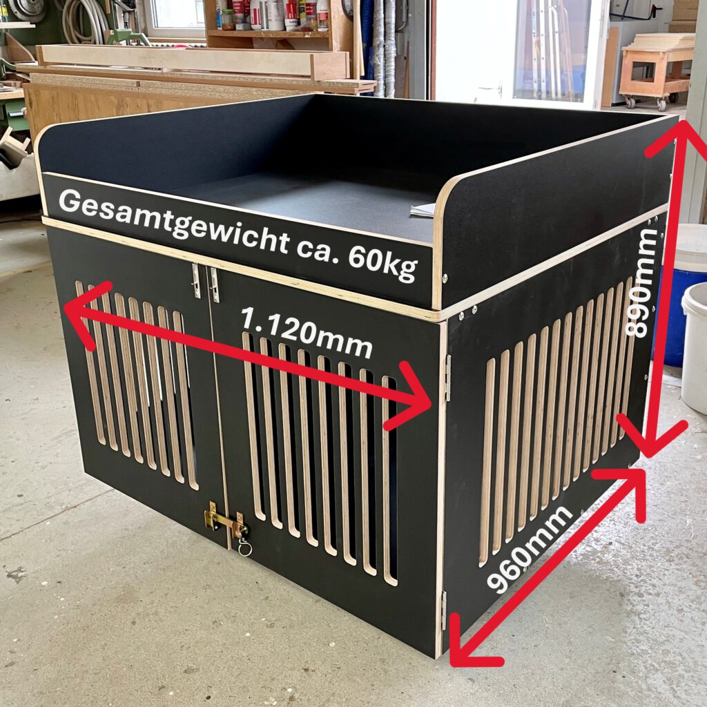 Maßgefertigte Hundebox mit Ablage für Koffer