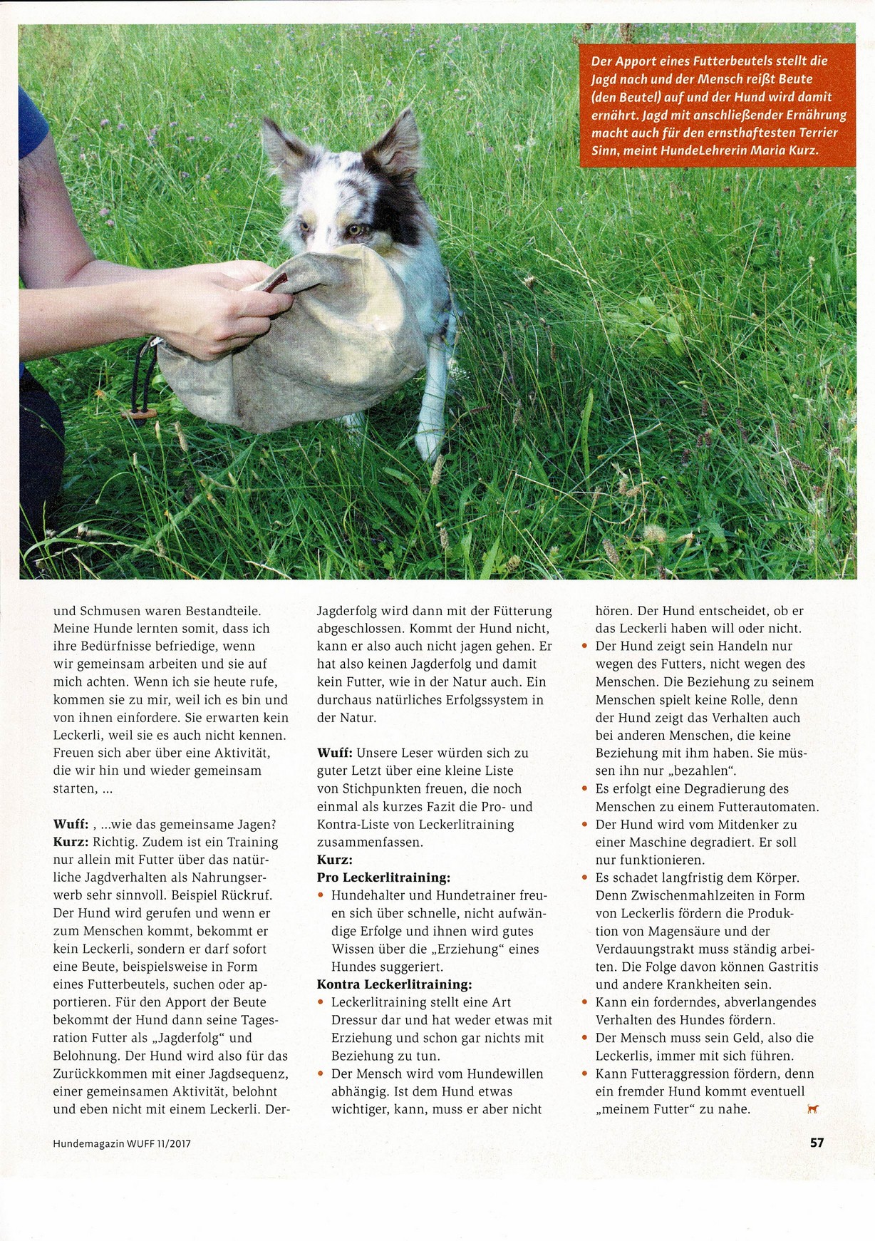 – Hundgerechte Beschäftigung (Hetzen, Revieren, Markieren)